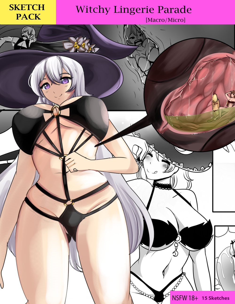 A bunch of a giantess witches are parading around in their fancy lingerie and one micro is eager to take lots of pictures to upload to her socials.